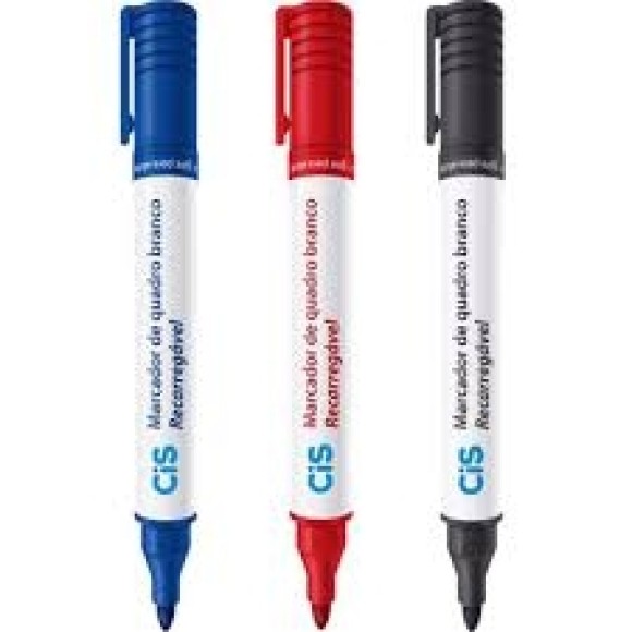 Marcador para quadro branco de excelente qualidade e fácil de apagar.
