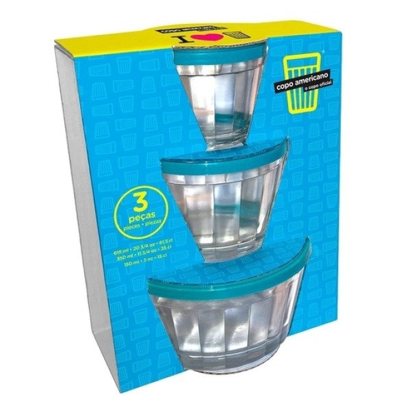 CONJUNTO DE TIGELAS DE VIDRO COM TAMPA AMERICANO 3 UNIDADES