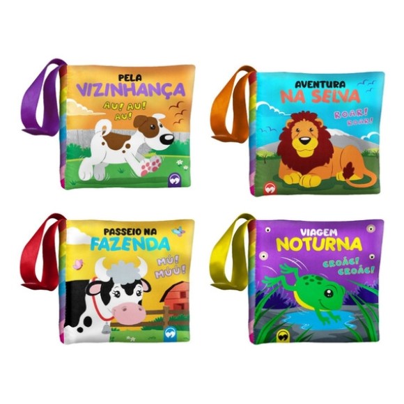 Livrinho de pano, macio, colorido e auxilia no desenvolvimento motor e cognitivo da criança.