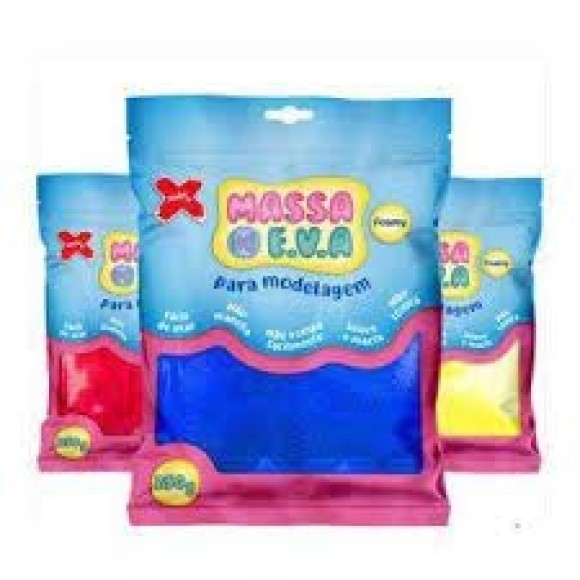 Massa flocada de eva para uso em artesanatos. Com flocos de isopor, secagem em aproximadamente 6 horas em contato com ar, não tóxico, tingível, suave e macia e não mancha. Produto muito leve após seco, super maleável, rendimento equivalente a 50g de biscuit.